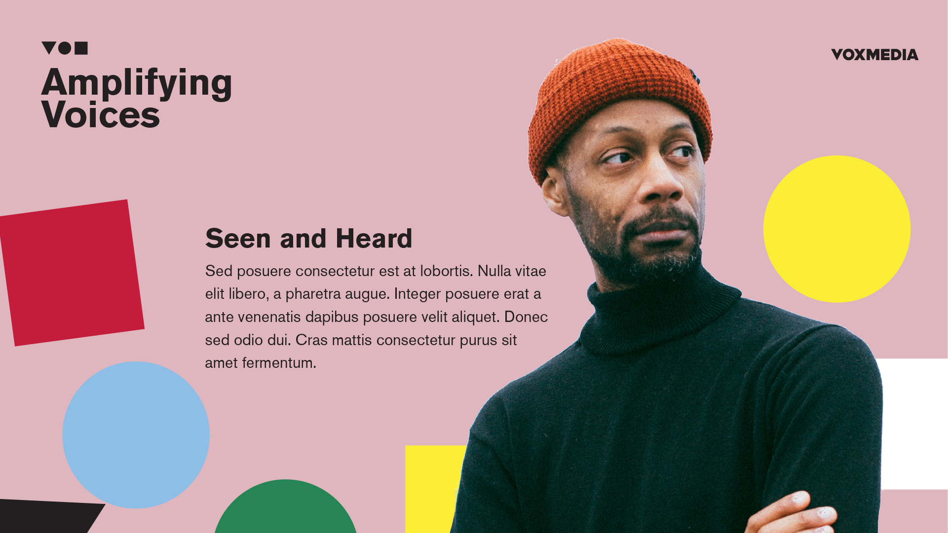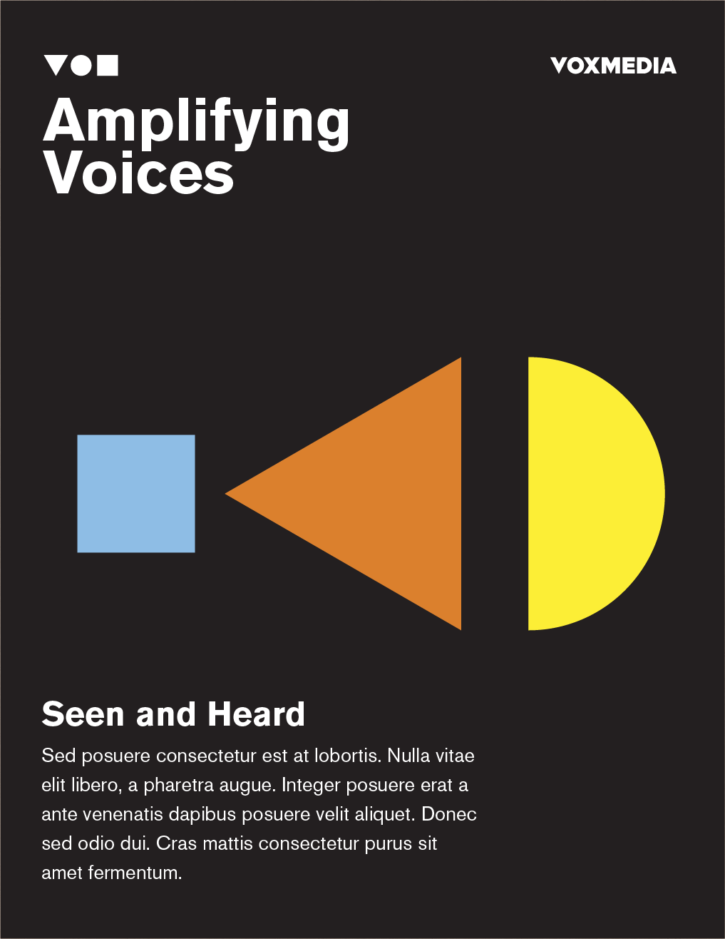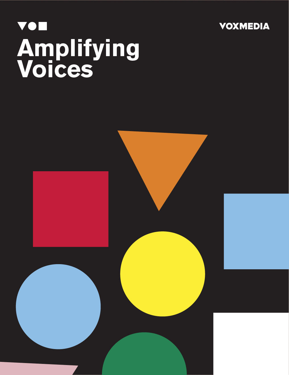 Amplifying Voices is Vox Media’s Diversity Equity and Inclusion department . The goal of this project was to create a brand that could put a spotlight on Vox Media’s DEI efforts and be an umbrella for resources, workshops and communication.